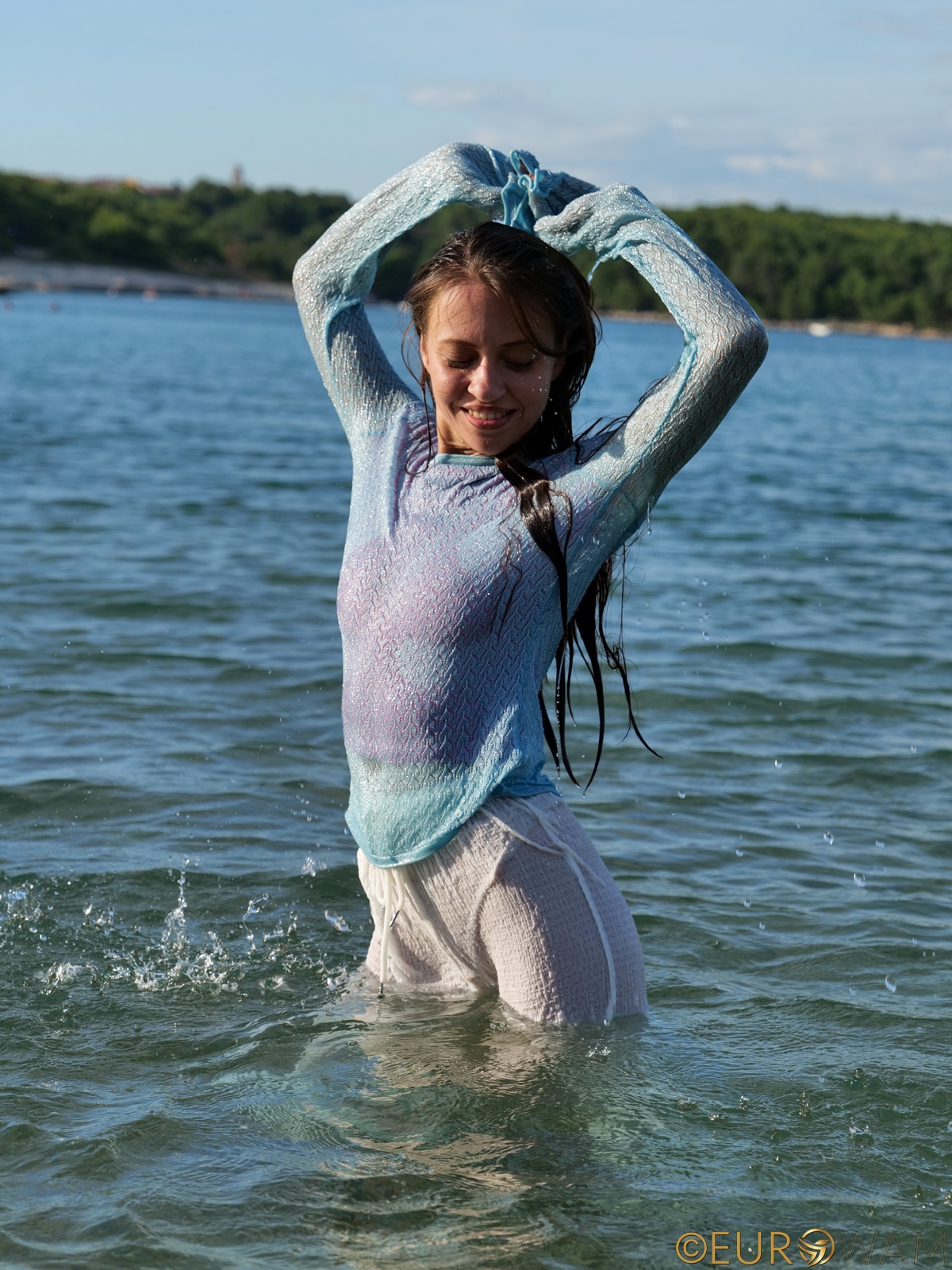 It was a windy day, so they decided to wait for better weather before jumping into the sea. When the sun finally returned, Lelle was the first to go into the water — fully dressed.