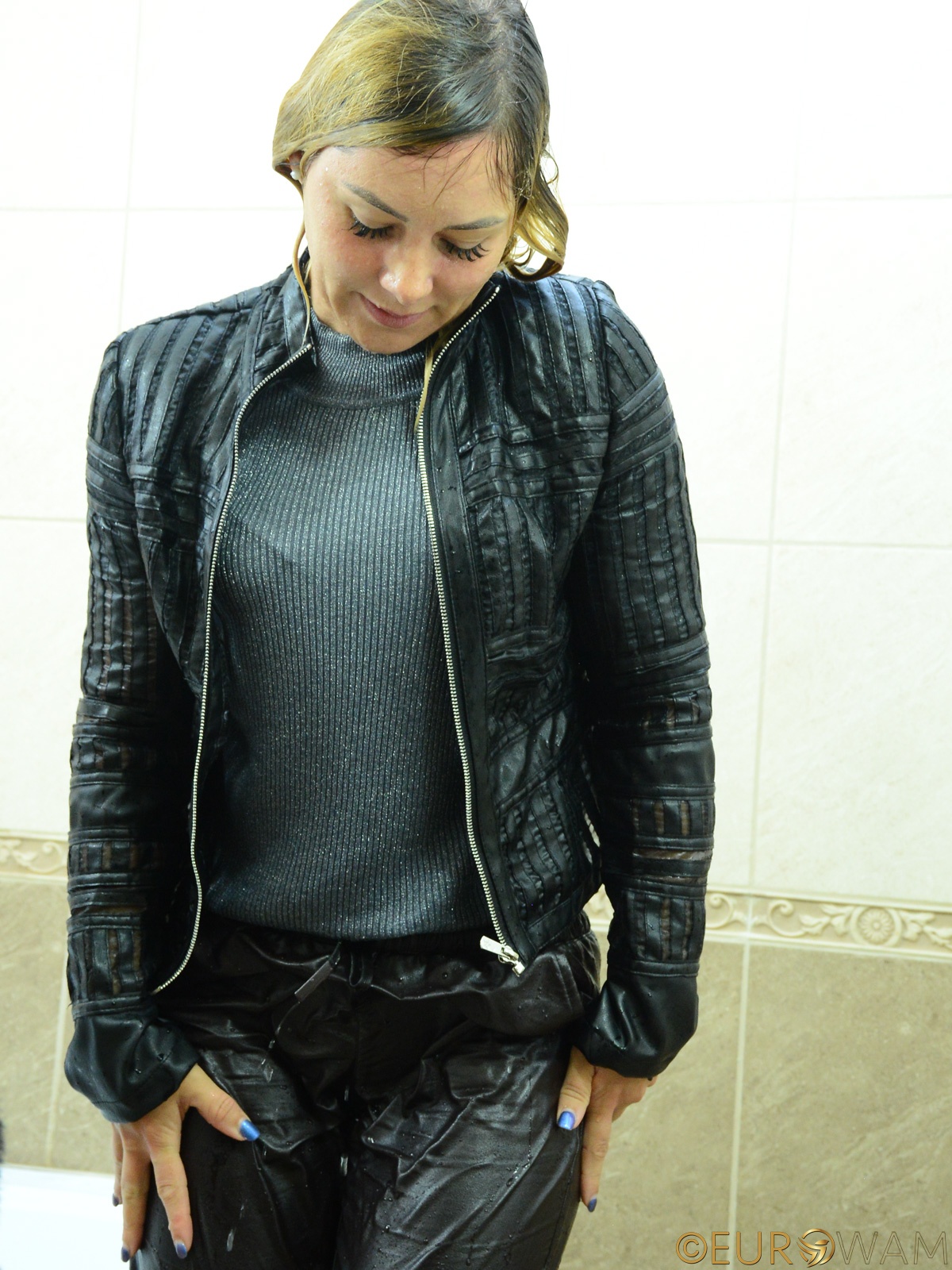 “Laundry’s overrated,” she muttered, as water danced on her shiny trousers and heels, like raindrops applauding her boldness.