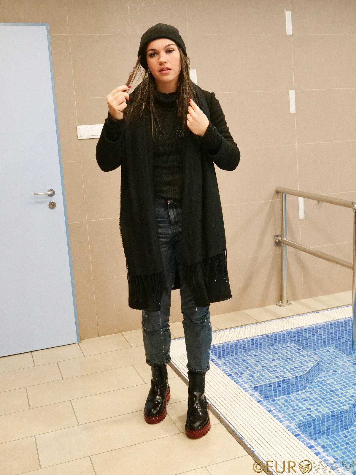Lara found Molli and Alina on a cold winter day, and as it turned out, Molli and Alina aren’t just best friends; they’re also skilled horse riding instructors working together at a local riding school! Molli wears a dark puffer jacket with a fur-trimmed collar and trendy light-wash jeans, while Alina's look is an elegant, long black coat that gives her a sophisticated winter vibe.