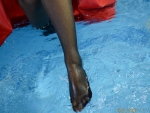 They both wearing nylon, but sadly they didn't take off their heels.