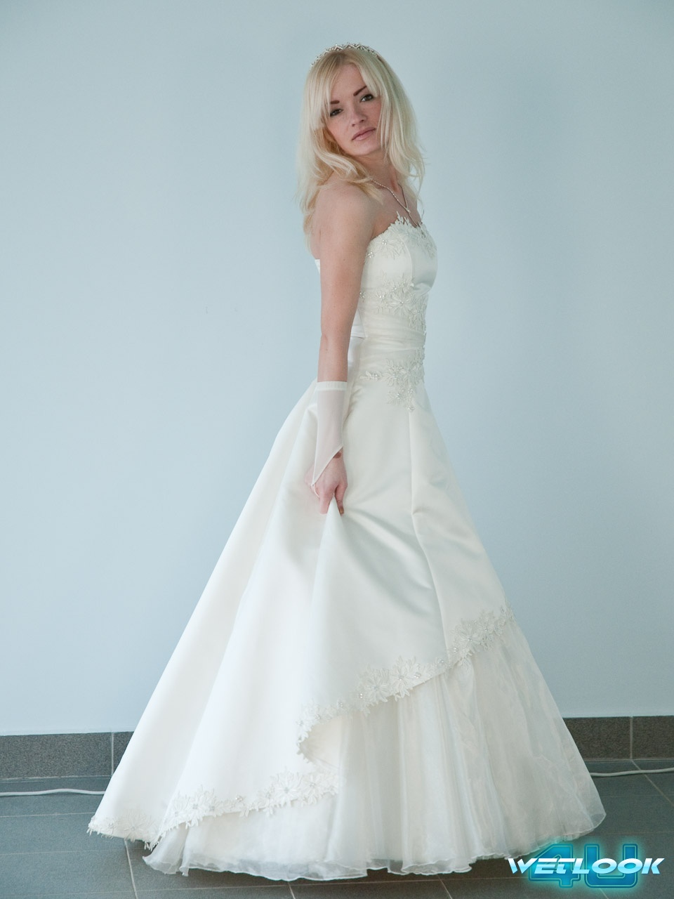 Viva was asked to model for a wedding planner company and at the end of the shootings she asked the owner of the company to let her keep the dress for the weekend. She had big plans with the dress, she wanted to show her boyfriend how pretty she will look when the "big day" will come. When she arrived home her boyfriend was missing and he left a note for her saying that he will be home only the next day because he had to leave town with some business... No problem, Viva thought... and she went straight into the pool room wondering how those beautiful dress will look like when it will be soaked.