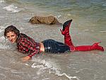 How the hack did she get that boots on her jeans? :) but one thing is sure, I like long boots with tight jeans especially if there is water in play :)