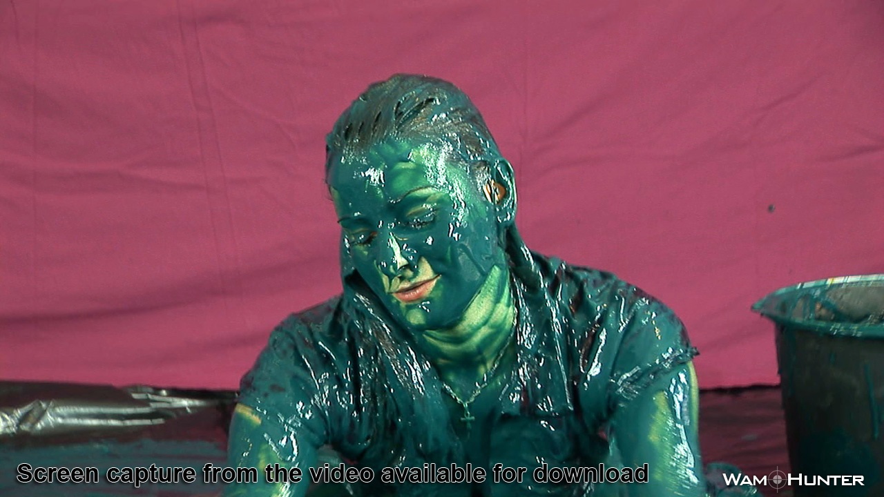 Gabriela was on her way to meet a friend and her clothes was like they was going out... BUT it was still noon and there is no daylight club in that area, so I am just guessing that these king of clothes are the ones that Gabriella is ordinary wearing. Now I cannot say anything because this kind of mini skirt is the one that reveal just as much of her beautiful legs, as needed for a guy to go crazy when he looks at them. If we count the sexy high heels an the pantyhose and if I will tell you that the red shirt was made from fine silk, you will certainly understand why I did everything in my power to get Gabriela gunged from head to toe.