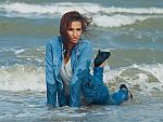 Always nice and sexy to see a superb girl getting wet whit is denim clothing and shoes on sea shore, very attractive to see. I love greatly the serious attitude of the model for making that, simply interesting...