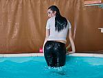 pool dunk, t-shirt, captri pants, pantyhose, wet, wetlook