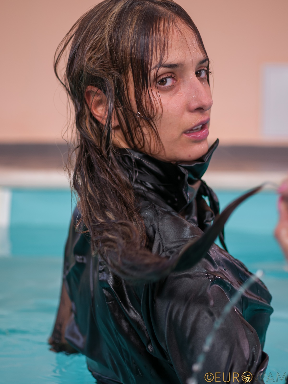 pool, boots, costume-play, pants, jacket, hat, wet, wetlook