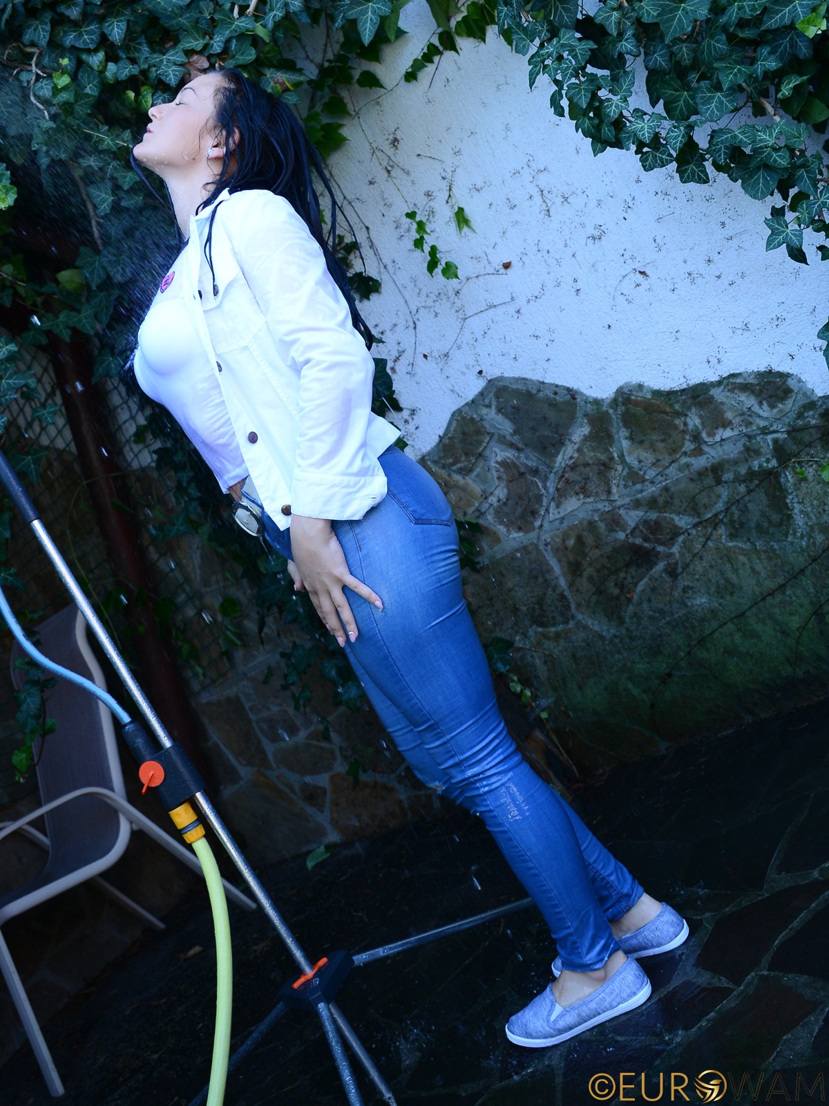 pool, shower, shoes, jeans, t-shirt, jacket, wet, wetlook, dance