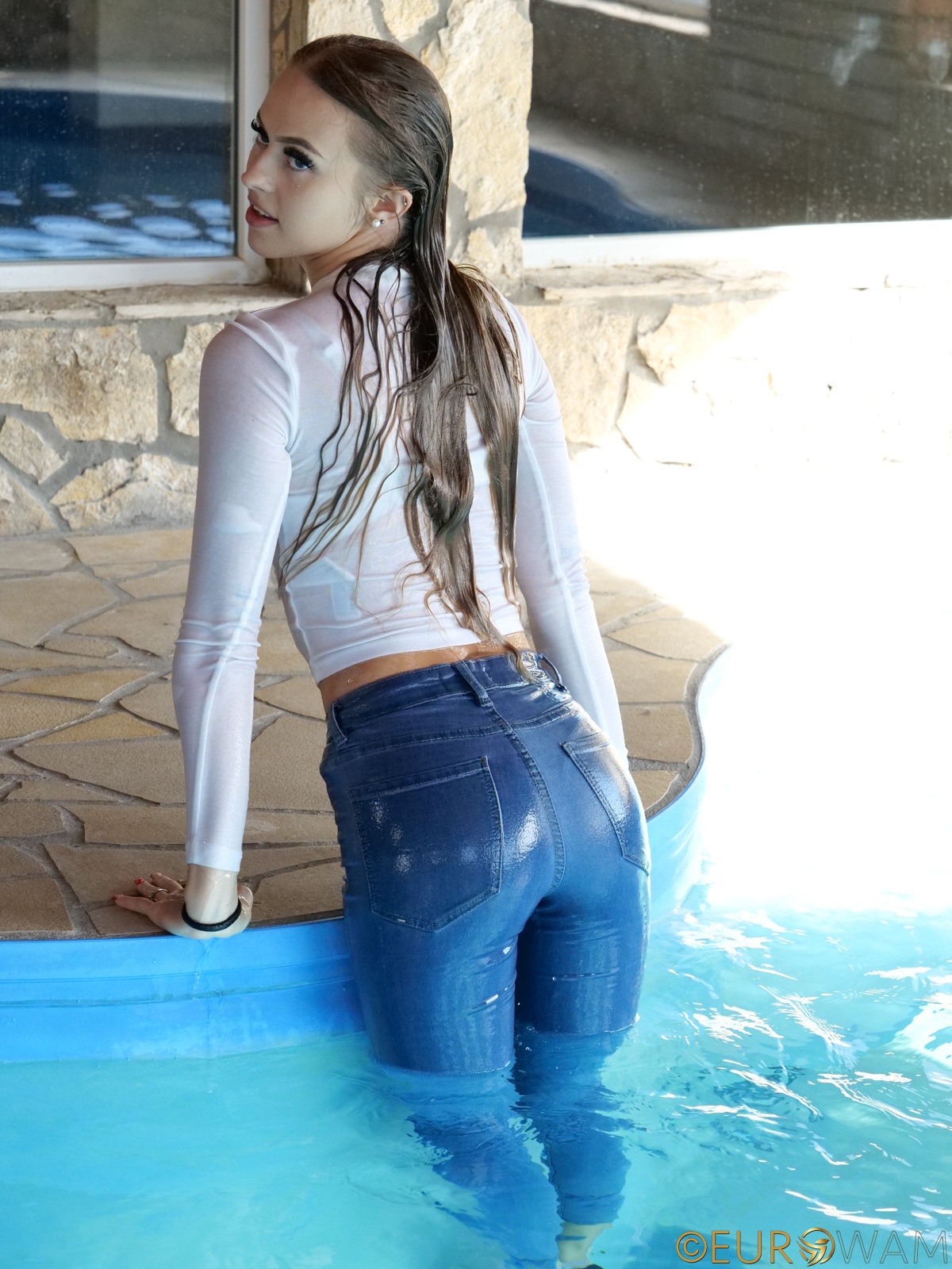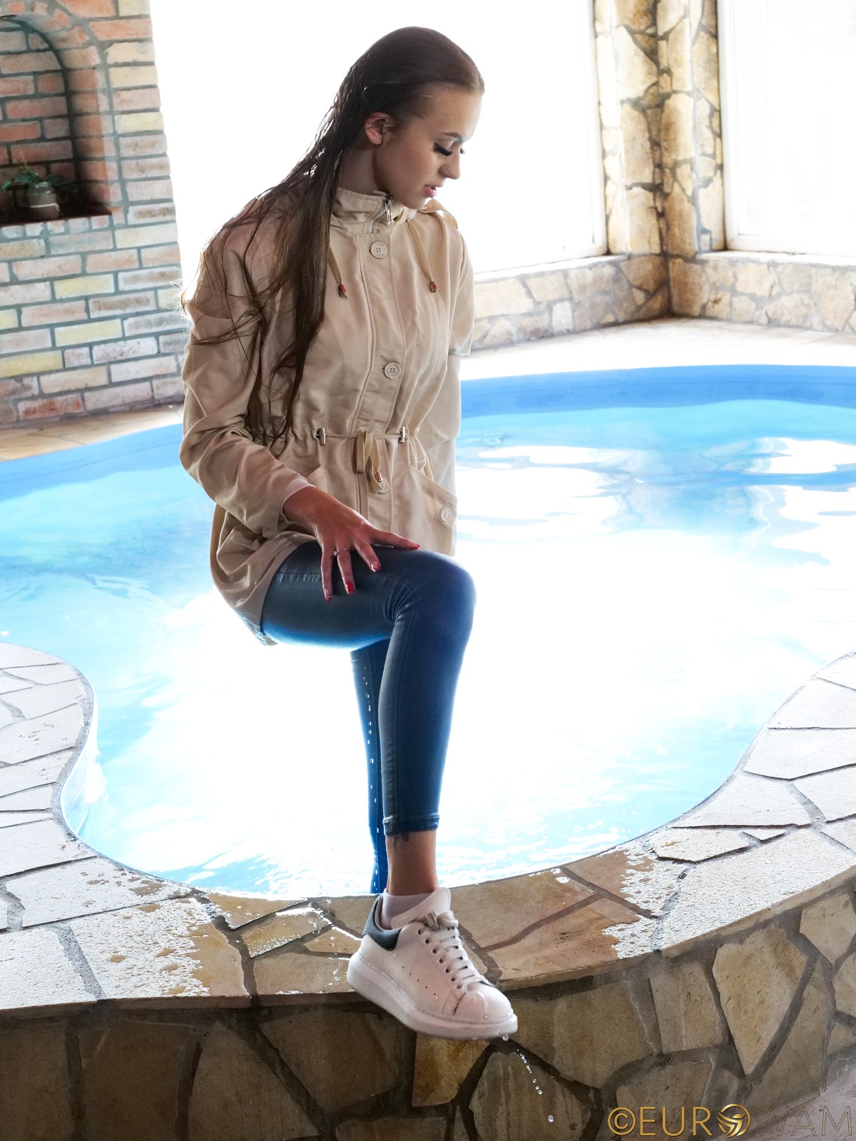 pool, sneakers, socks, jeans, jacket, seetru, blouse