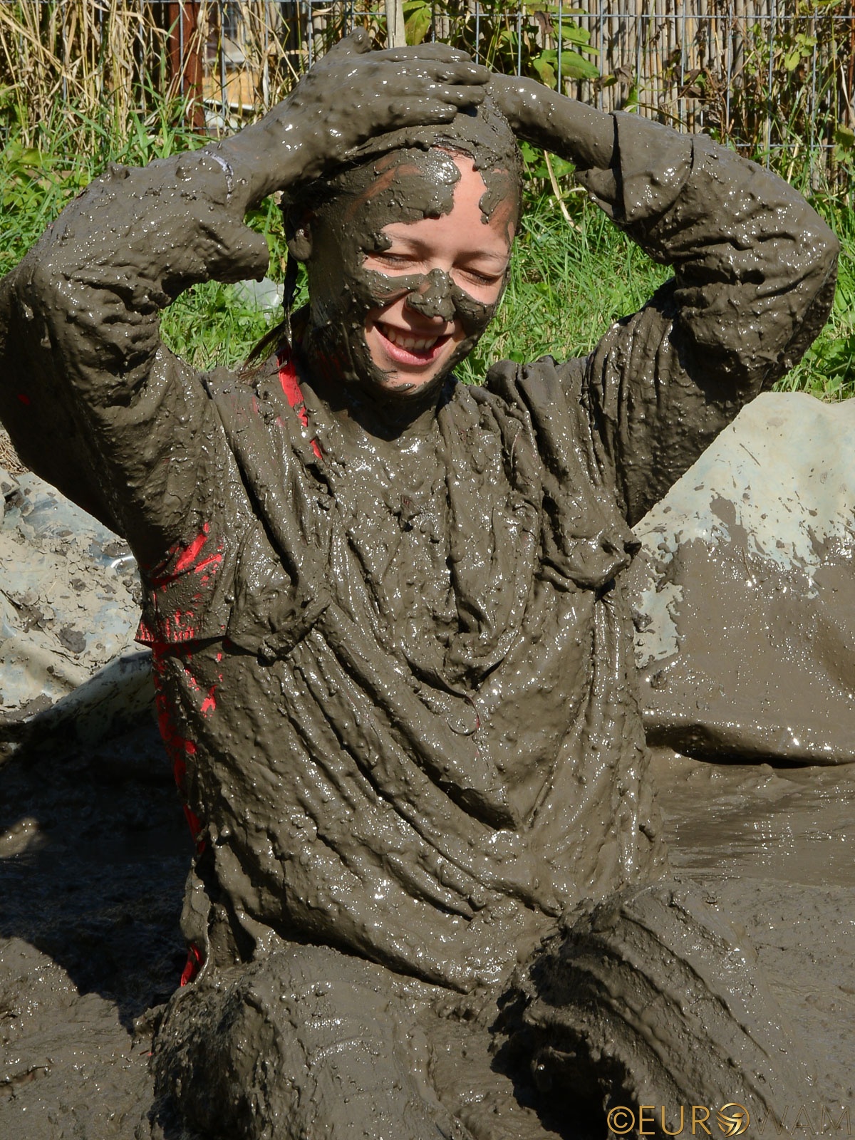 Yes, her clothes survived the mud, even her white shirt. :-)