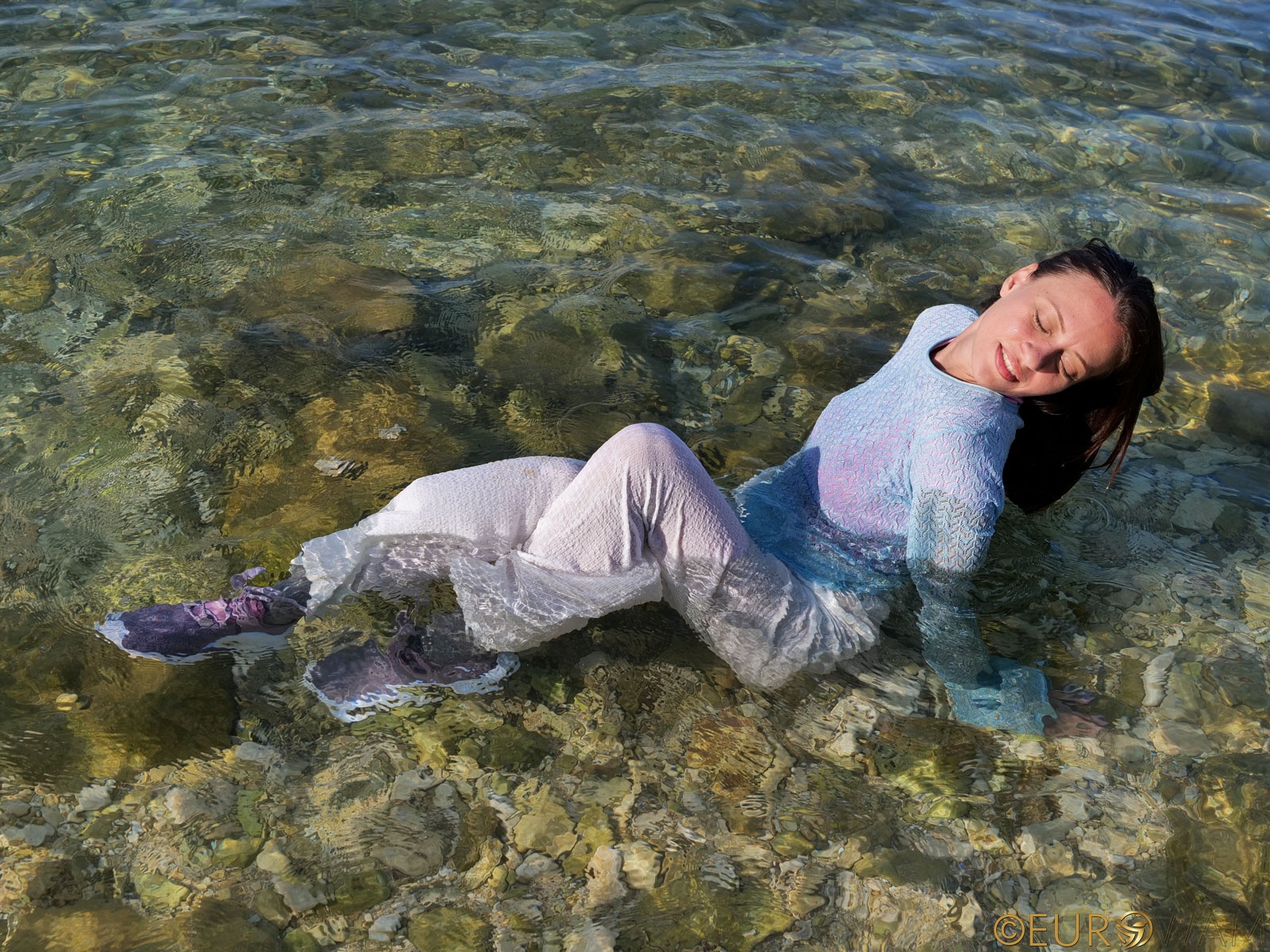 It was a windy day, so they decided to wait for better weather before jumping into the sea. When the sun finally returned, Lelle was the first to go into the water — fully dressed.