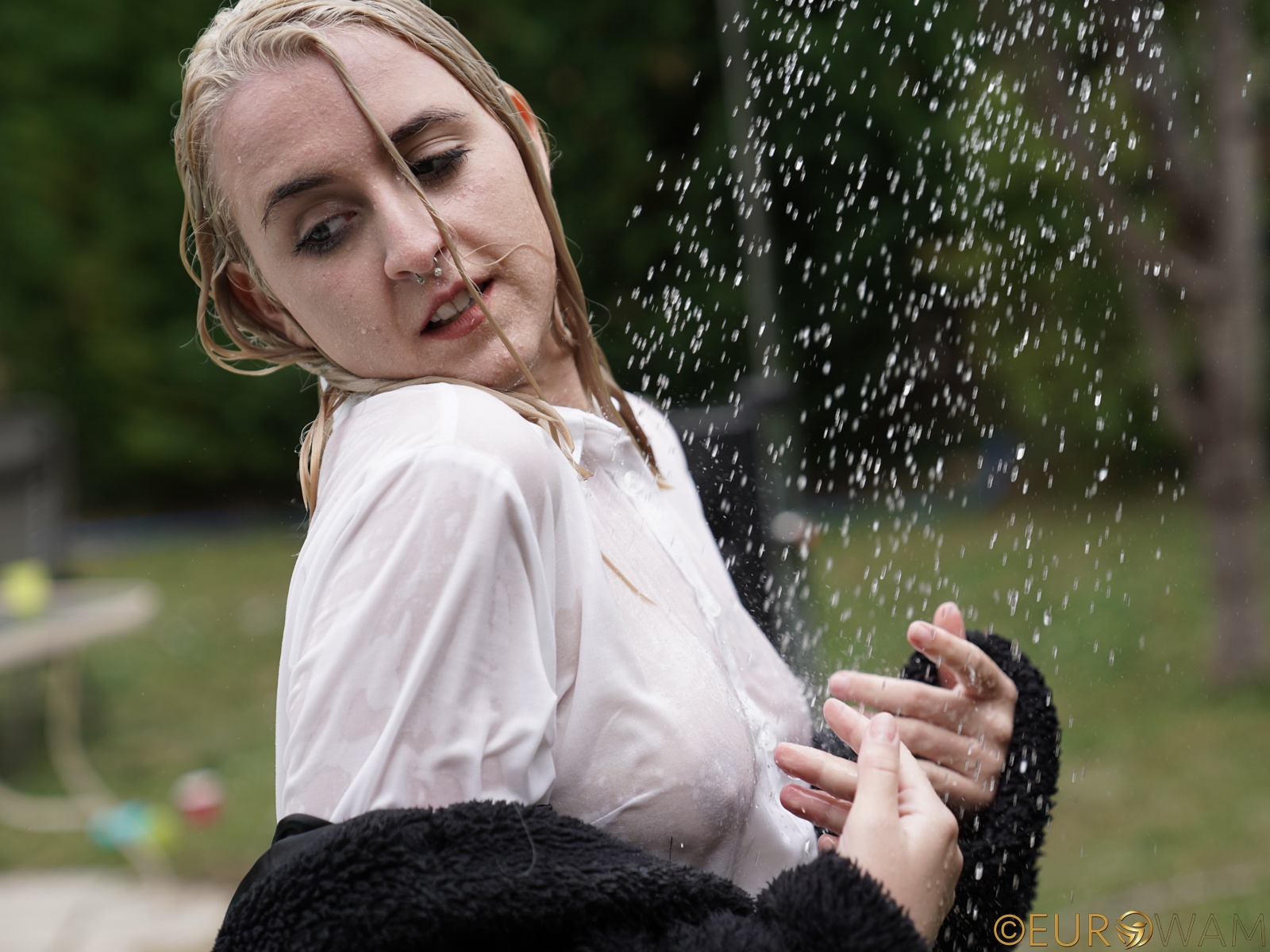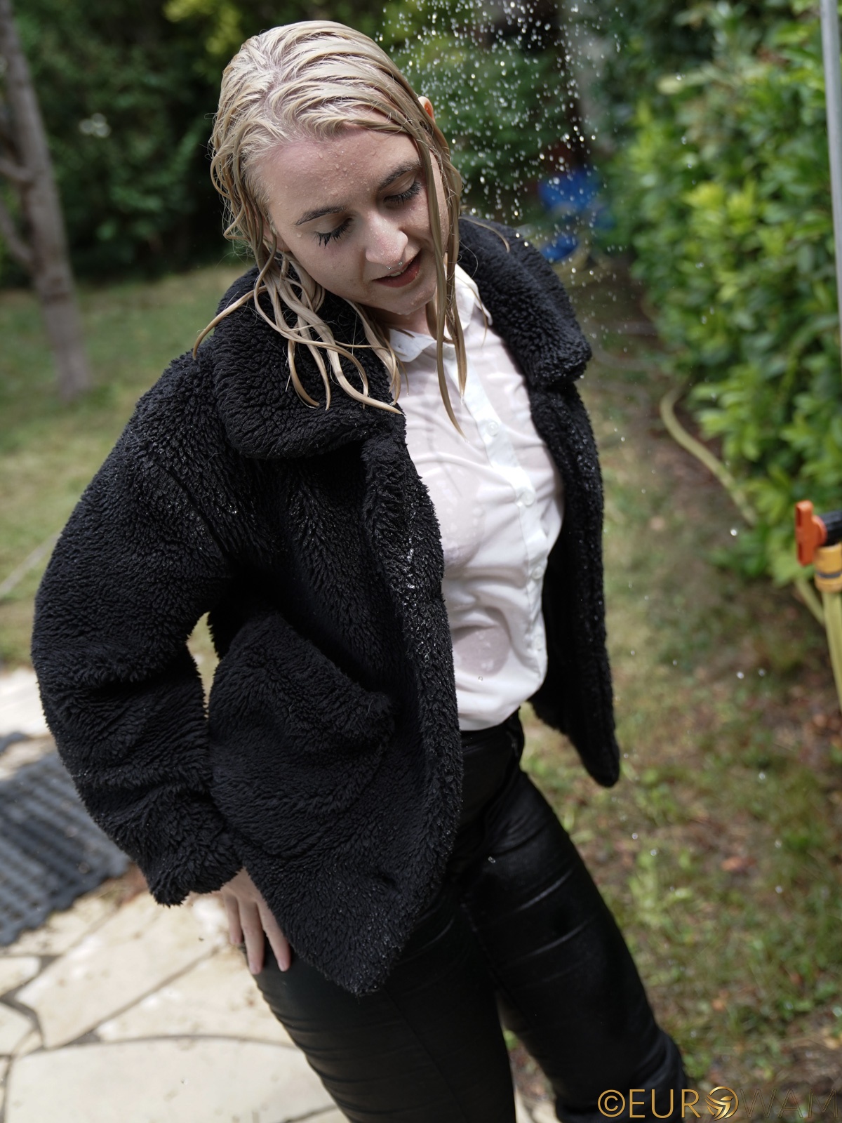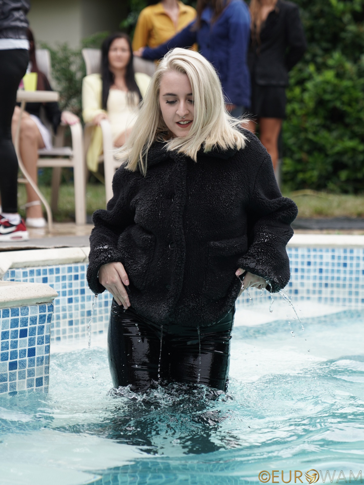 pool, shower, boots, pants, coat, faux fur, seethru, shirt