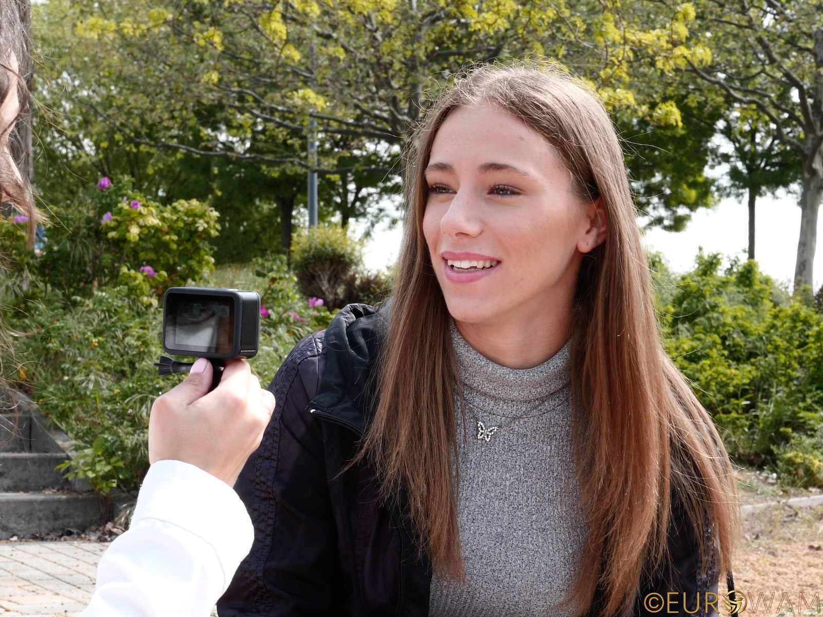 Her name is Eleonora, and she was heading home after she organised a place for a birthday party. The day was sunny but still a little cold, and most probably on a day like this, I wouldn't dream of "hunting" for beautiful girls. Of course, Lara is a different kind of hunter, and besides, she was stuck in Budapest for a whole week, so what could she do? It's true that the whole week, only two girls could be convinced to swim in their clothes, but it's better than nothing, right? Eleonora is the first girl from that week. Enjoy.