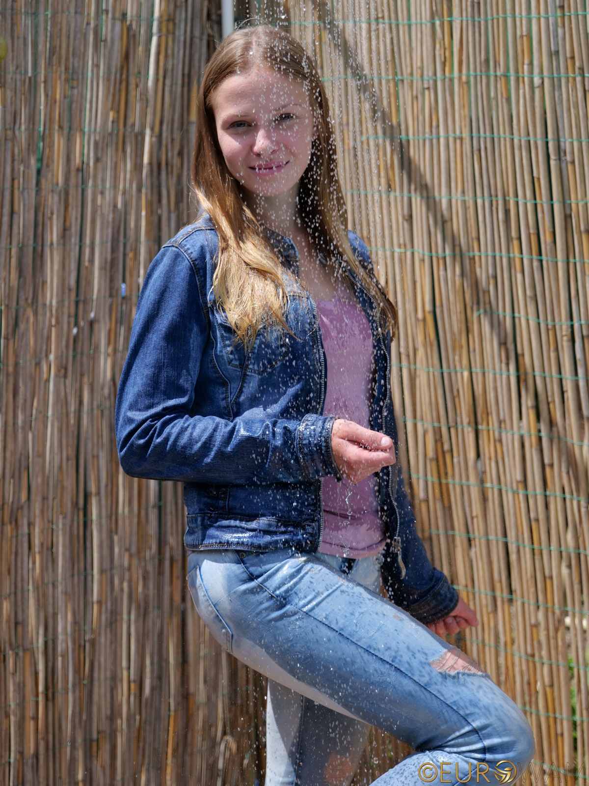 Water streamed down her jeans and jacket, soaking everything with a splashy vengeance. She stood there, stone-faced, like a fashion-forward statue honoring “Women Who Regret Wearing Denim in July.”