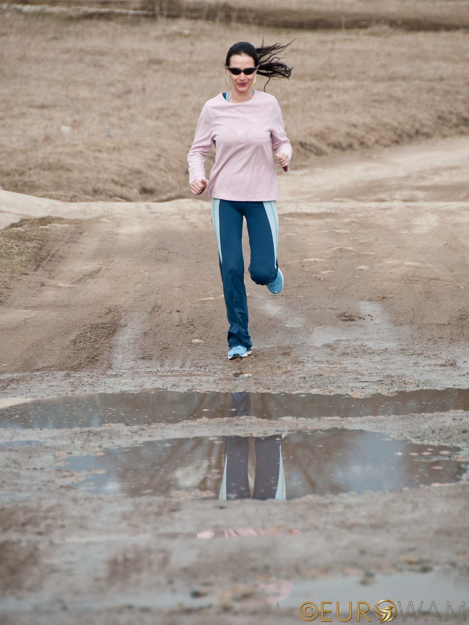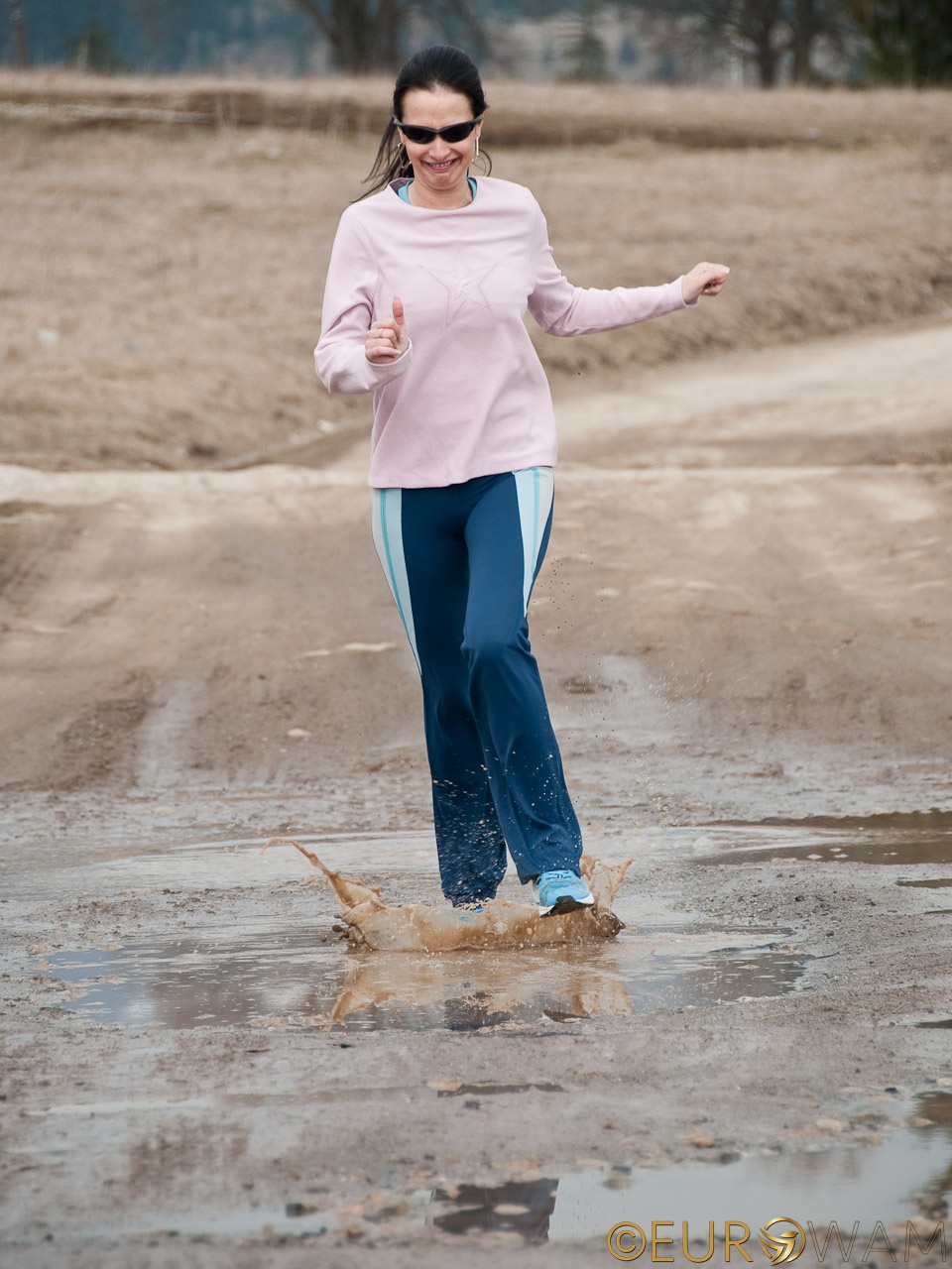 Karida dislikes mud, puddles, and jogging, so we combined all three at the start of this session. She likes wetlook, and she also likes the cameras surrounding her, even when she is topless, like at the end of this clip.