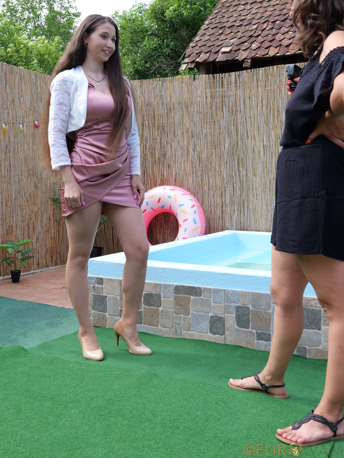 jacuzzi, heels, pantyhose, satin, dress, jacket