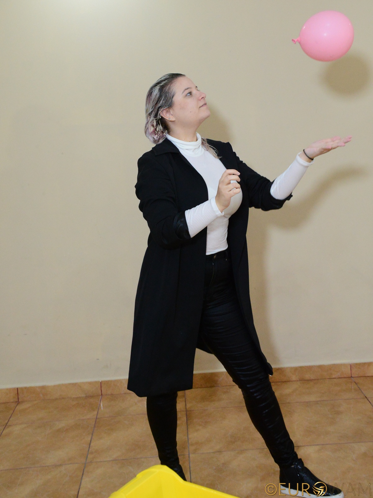 A second later, she was sitting in the pool, fully dressed, coat, pants, shoes, everything soaked, looking at the water like it had personally betrayed her.
